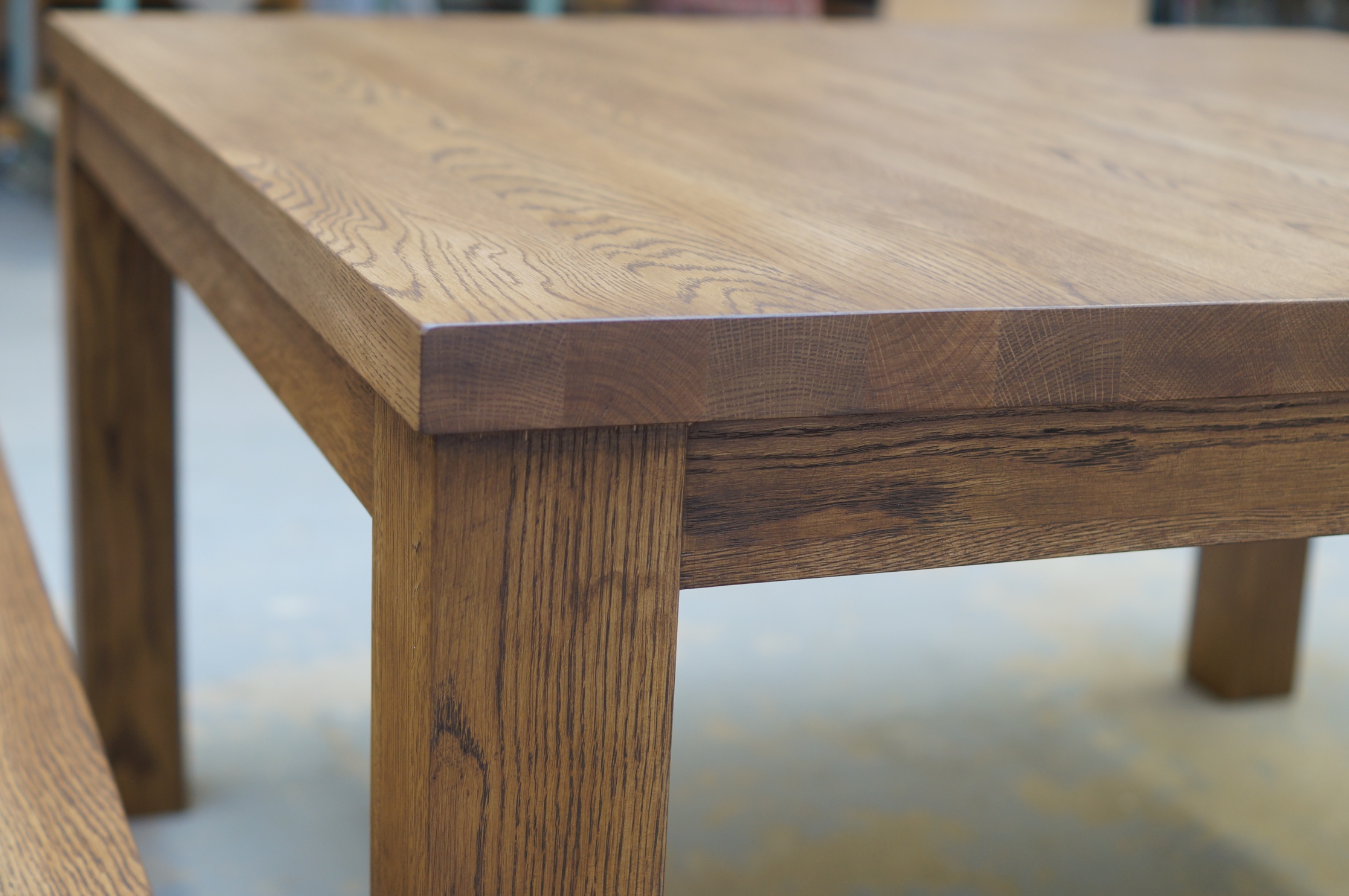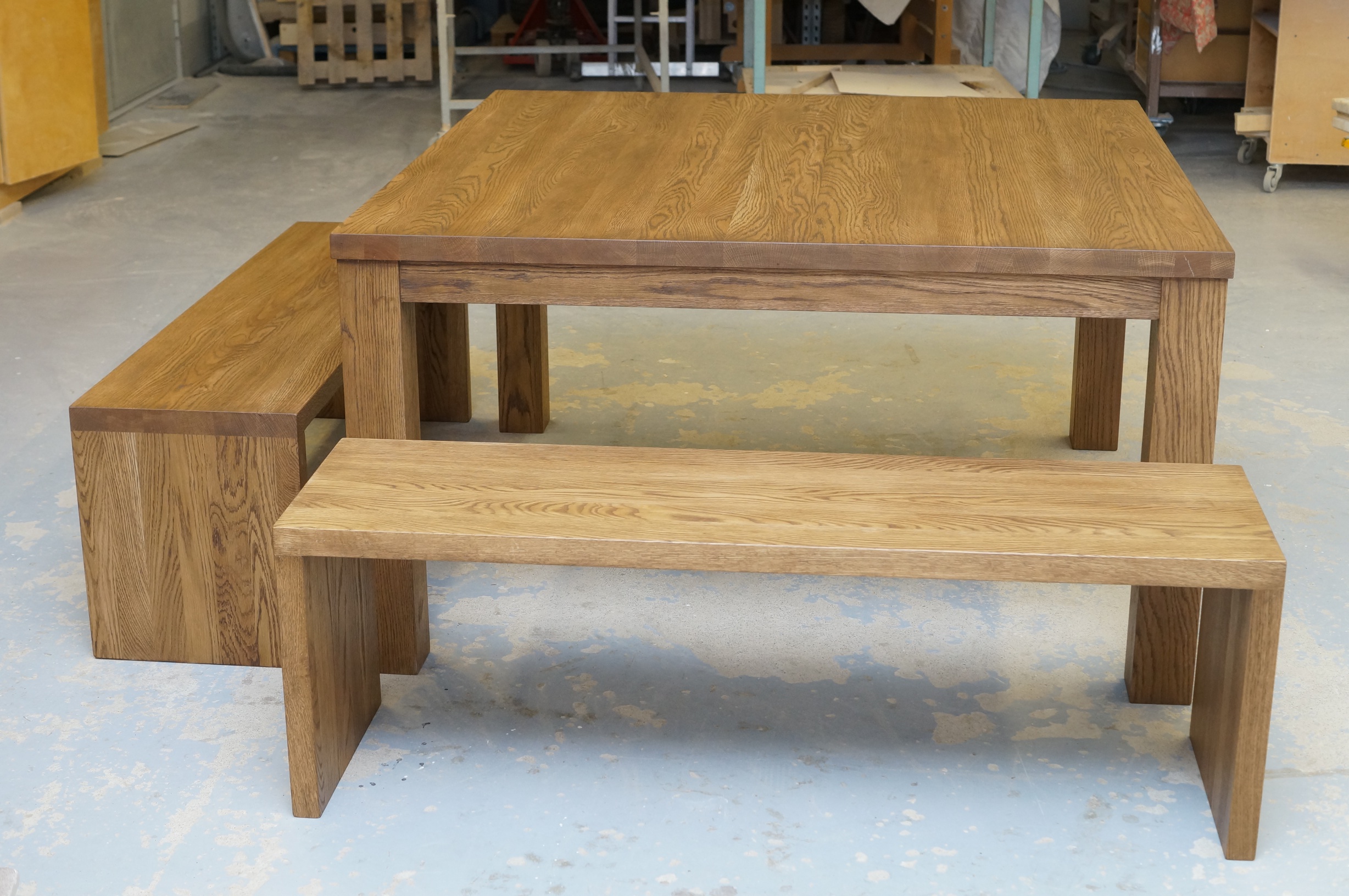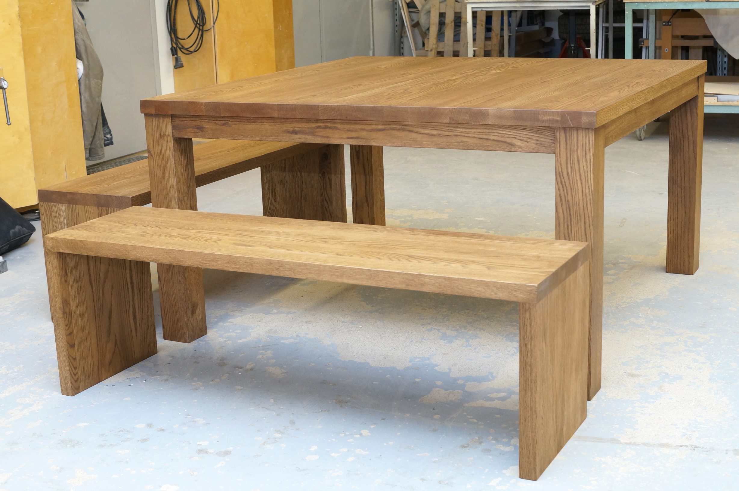 Jykevää tyyliä hakevalle tamminen pöytä ja penkit.