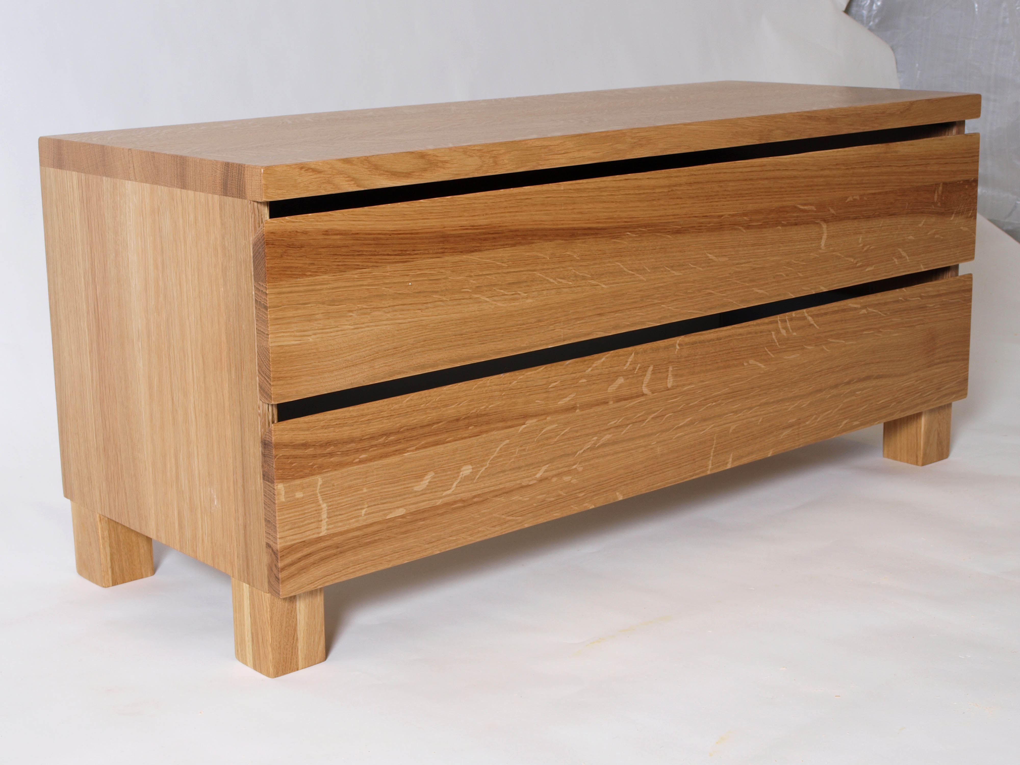 Tamminen lipasto on suunniteltu kylpyhuoneen pukeutumispenkiksi. Laatikot avautuvat vetourien avulla,joten vetimiä ei tarvita. Penkki ei taivu tukevammankaan istujan alla. Lattiakaatojen varalta jalat voi varustaa säätötassuin.