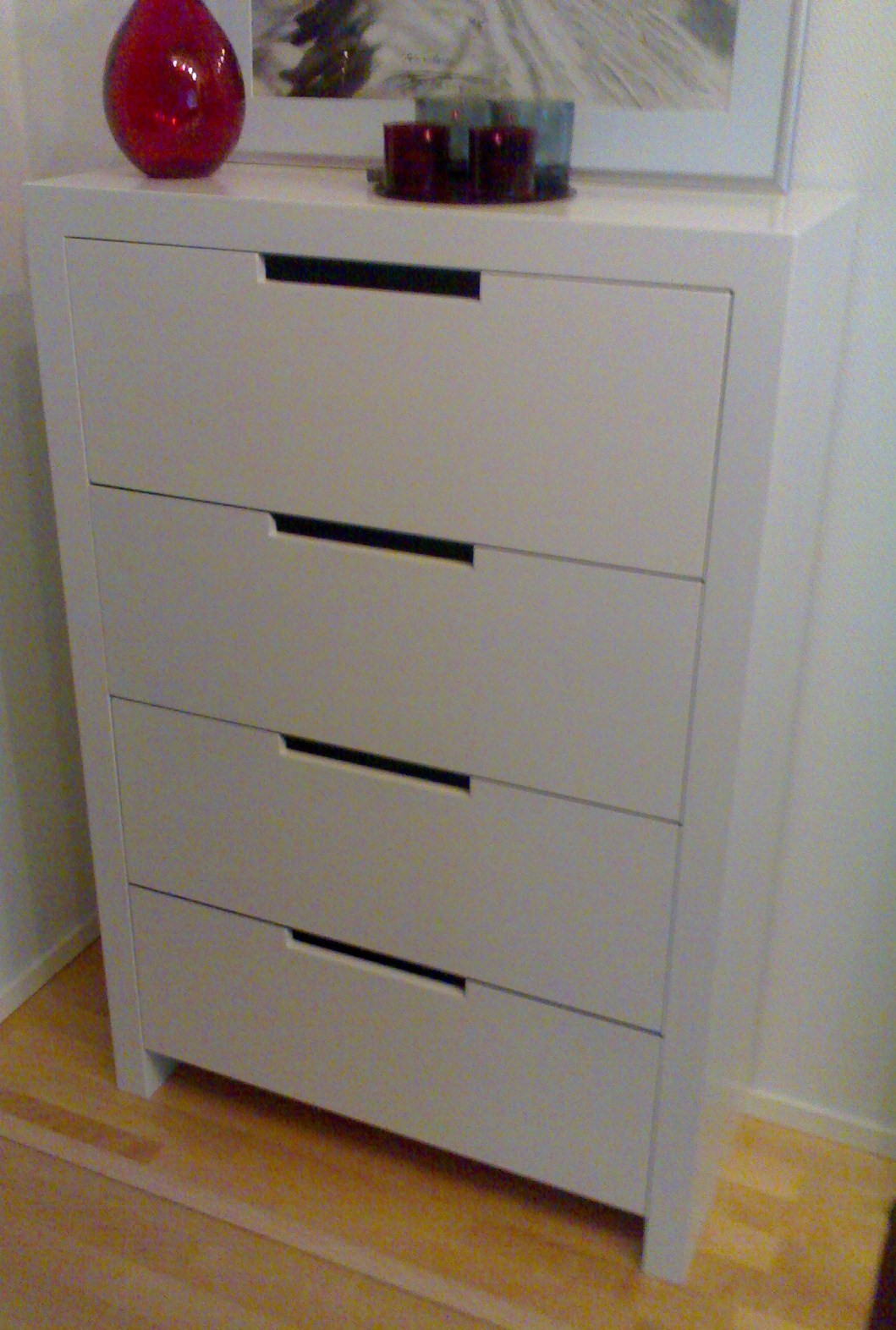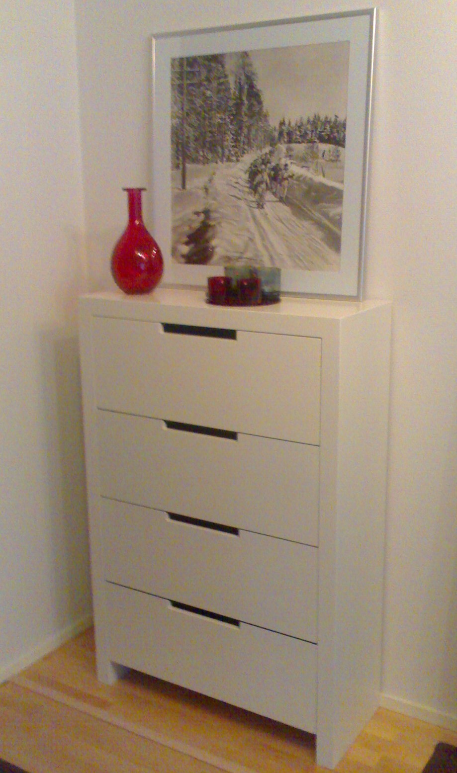 Vetimet on toteutettu laatikoihin sahatuilla aukoilla. Pienen syvyytensä ansiosta vie vain vähän tilaa usein ahtaassa eteisessä.