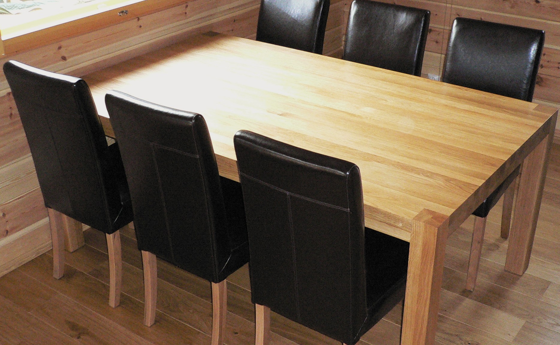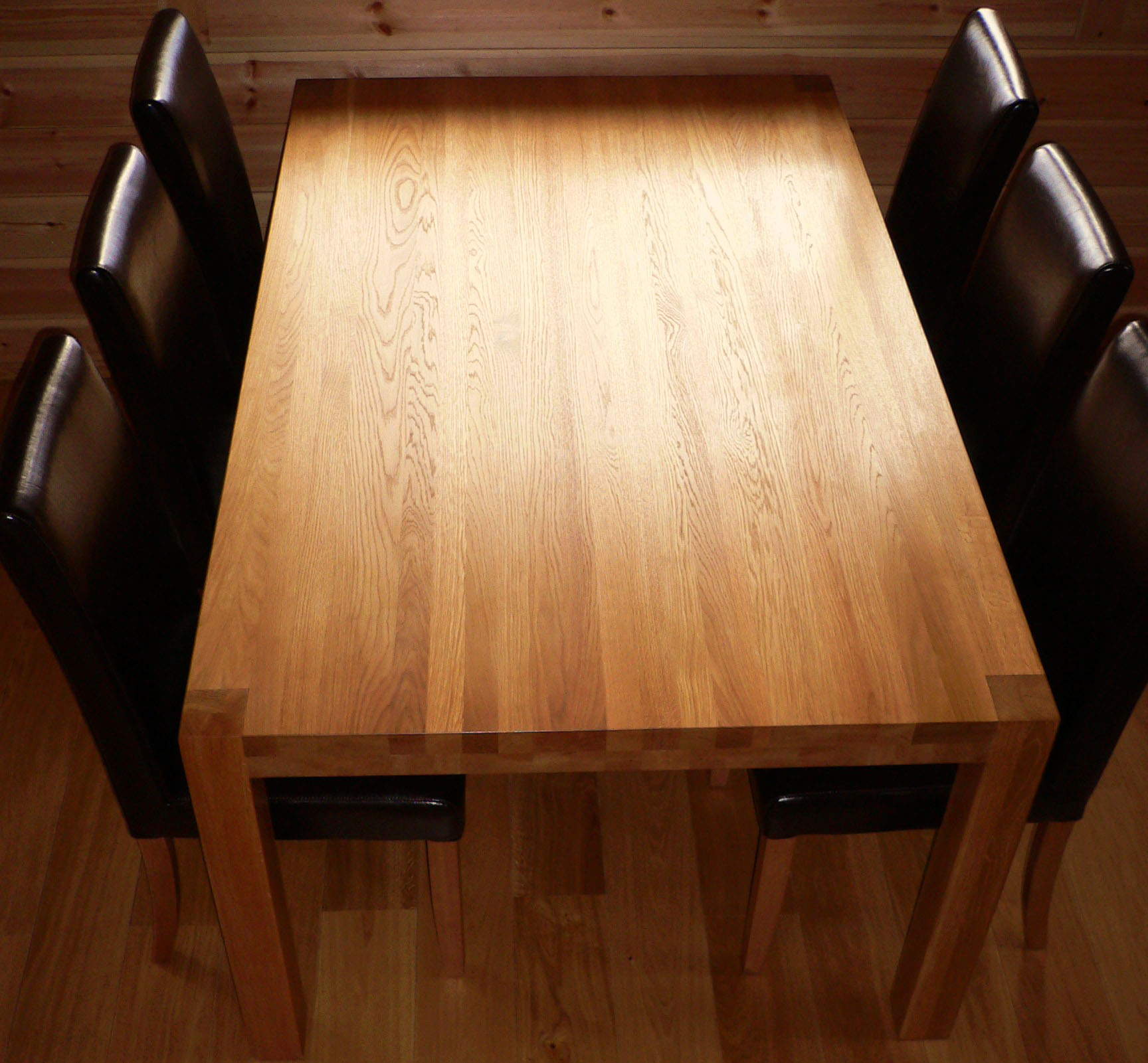 Tamminen ruokapöytä kannen läpi liitoksin.