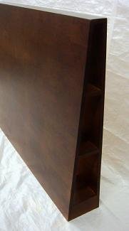 Irralliset lukuvalot voidaan asentaa päädyn päälle. Huomaa pieni kaltevuus päätylevyssä. Rohkeimmat sisustajat ovat laittaneet näihin tasoihin tyynyt roikkumaan selkänojiksi.