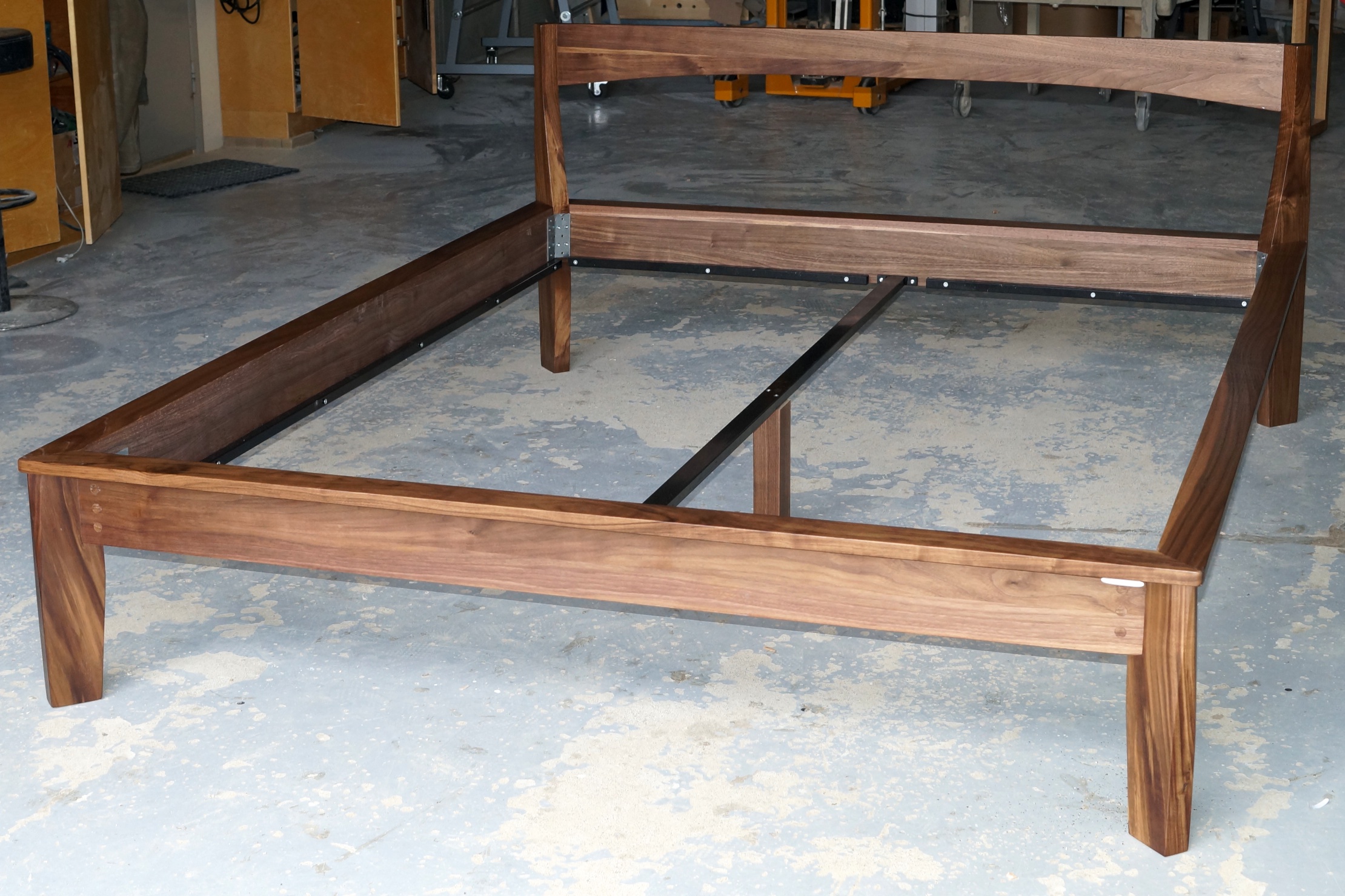 Pähkinäpuinen sänky. Jaloissa ja päädyissä ilmettä antavat leikkaukset. Kuvat ei kerro totuutta ja sänky on luonnossa todella upea.