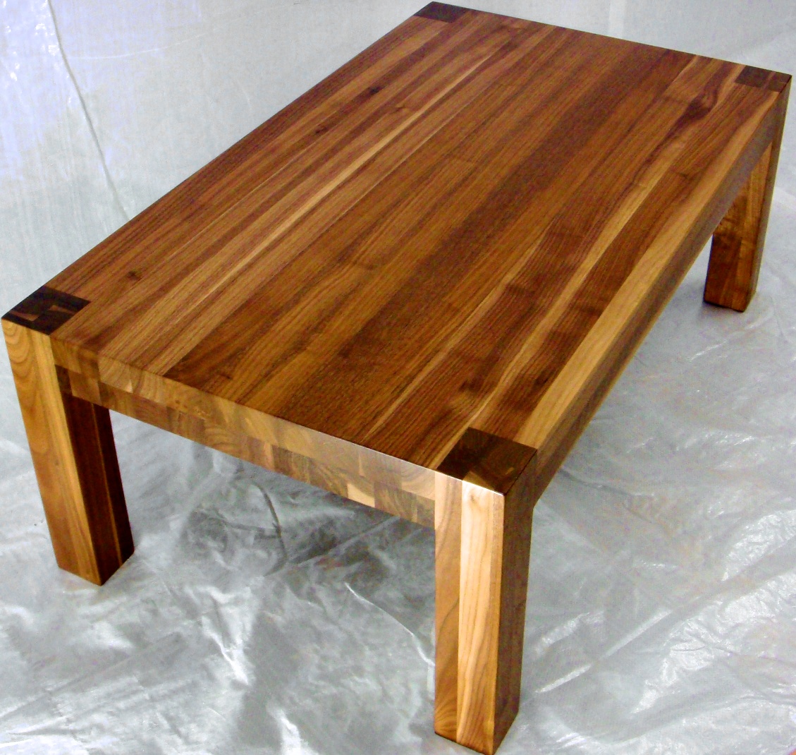Pähkinäpuinen sohvapöytä läpi kannen jaloin.