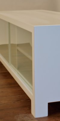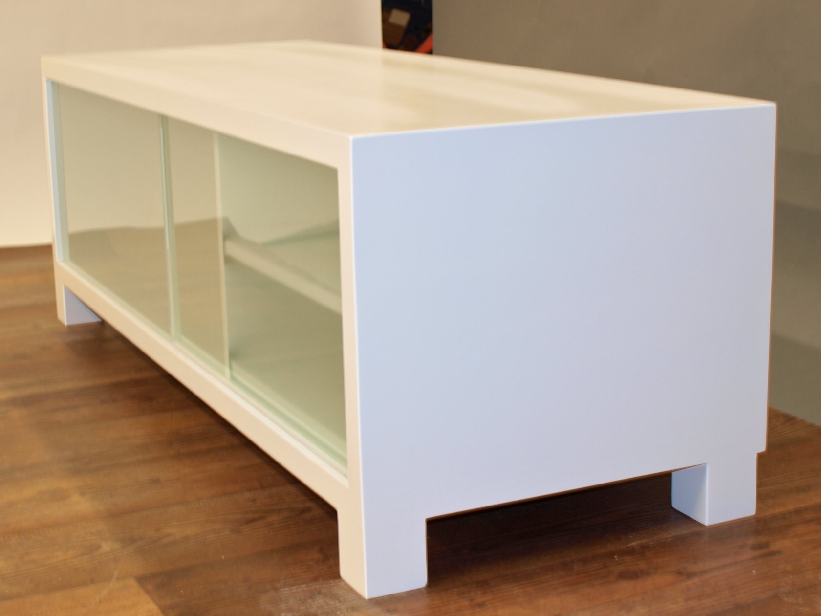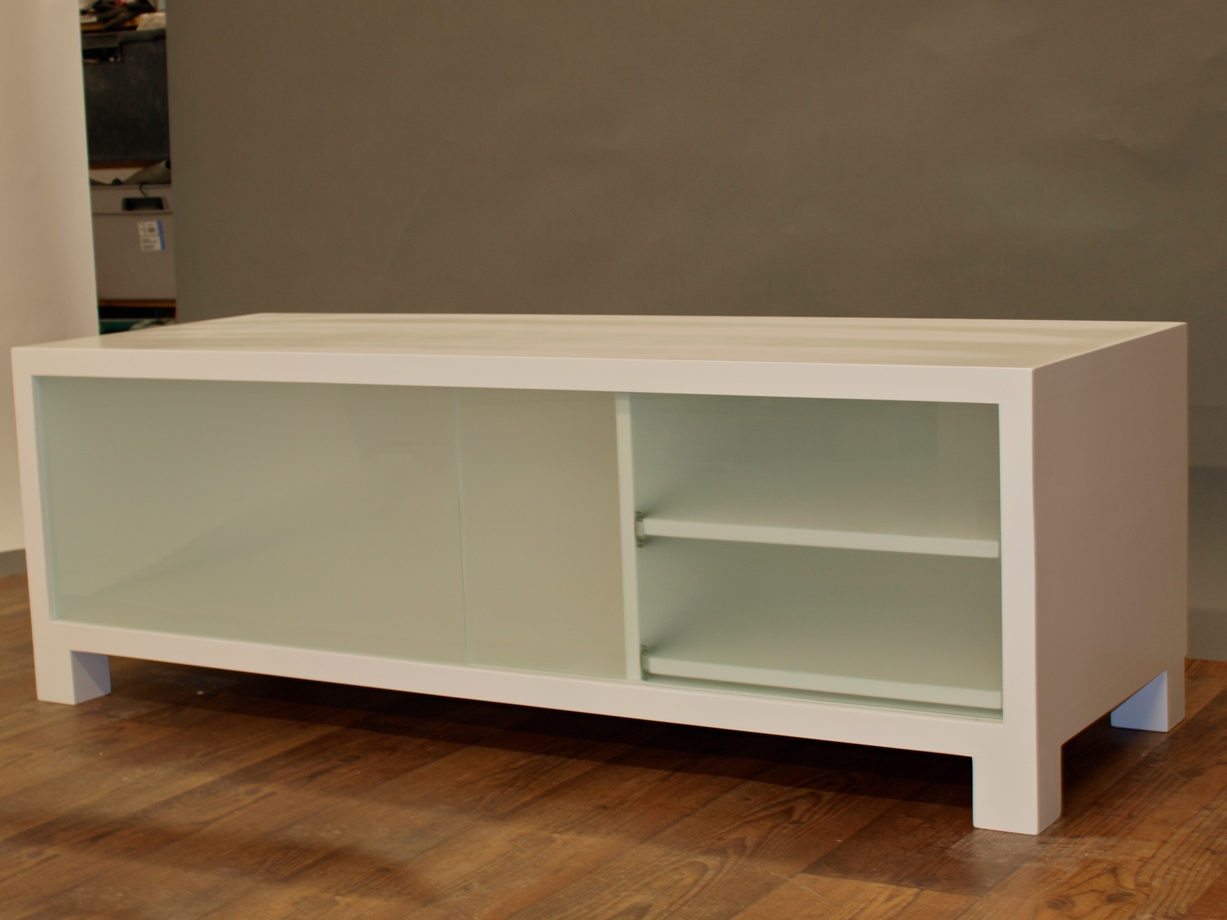 Valkoinen selkeälinjainen tv-taso on helppo ja turvallinen valinta modernin kodin tasoksi.