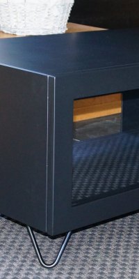 Tv-taso, joka kuvastaa tämän päivän erilaisia tarpeita. Toisilla on seitsemän laitetta, useimmilla vähemmän. Tämä taso suunniteltiin yhdelle järeälle vahvistimelle.