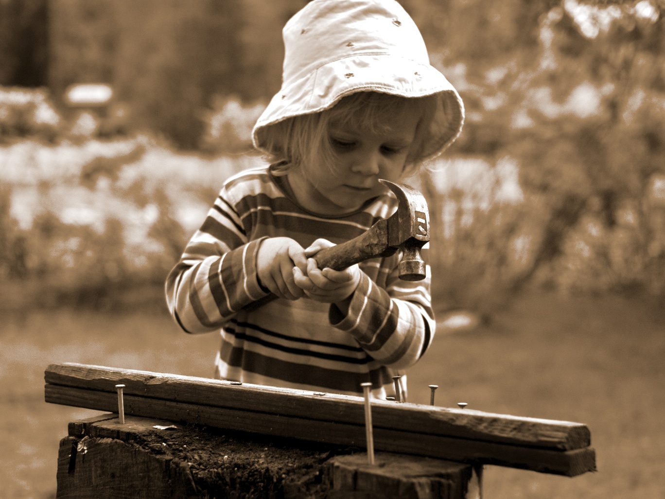 Pienenä poikana isän askarteluhuone oli varsin vaatimaton; Höyläpenkki ja perustyökalut. Into tekemiseen oli sitäkin kovempi.